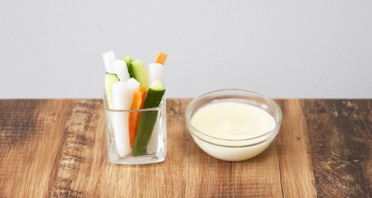 たっぷり入れると野菜スティックに絡まなくなってしまうので、入れる量はお好みに合わせて調整してくださいね!